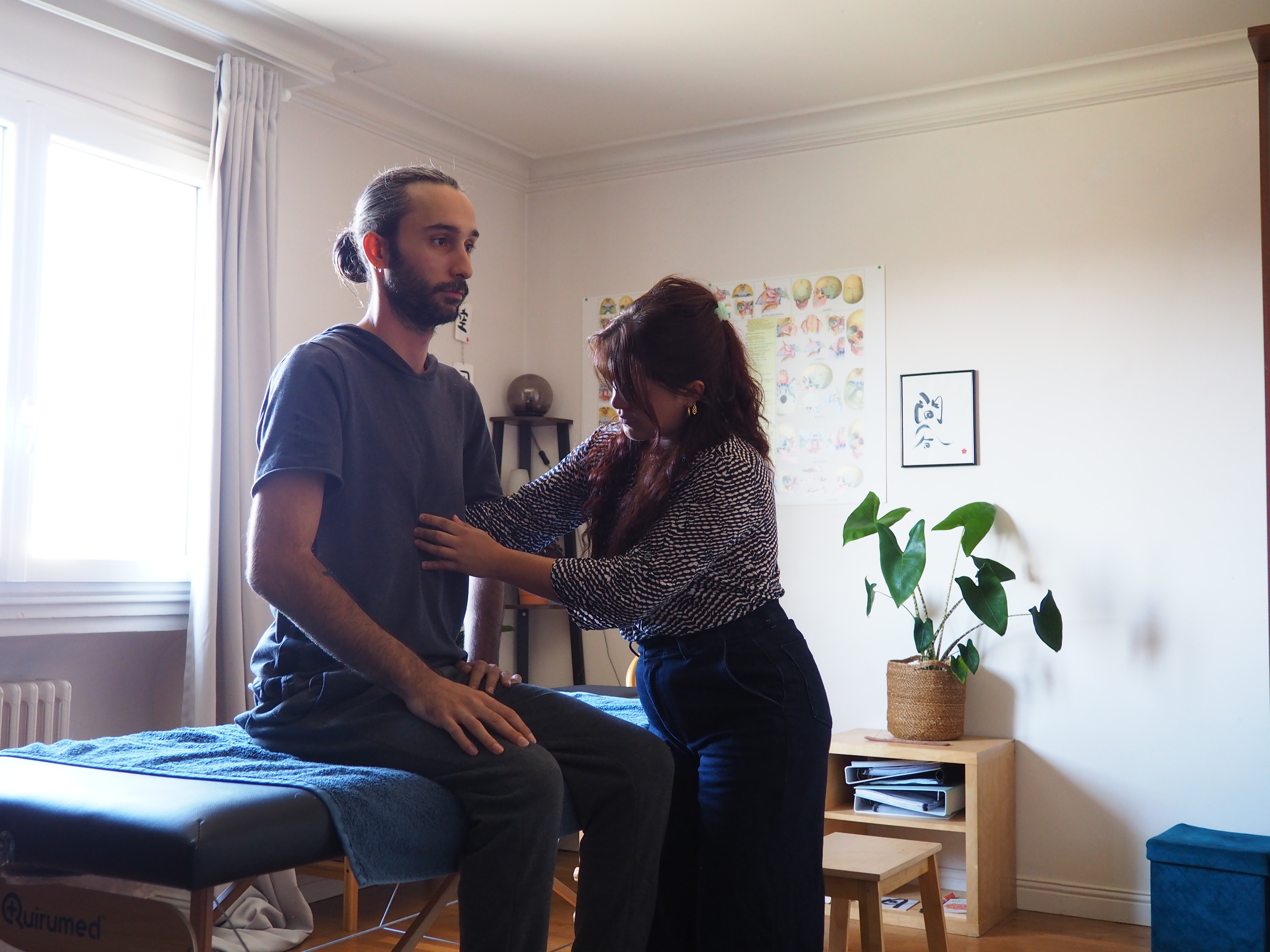 Je vous propose ensuite de prendre place sur la table pour une écoute précise du crâne, des organes et de la structure globale.